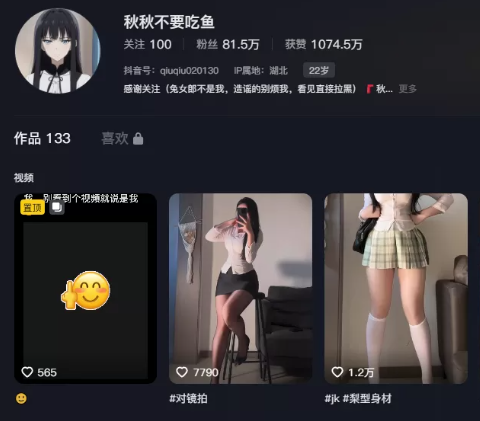 抖音号:42416606563,IP属地:湖北,22岁,闺蜜:@松沪女子,微博@秋不吃鱼,感兴趣的自己去关注了解。